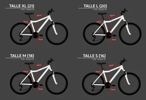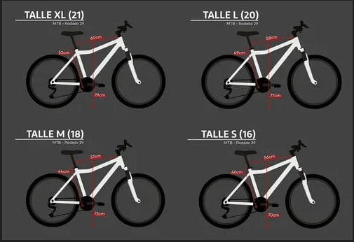 Las geometrías de los cuadros varían dependiendo el talle de la bicicleta que elijas.