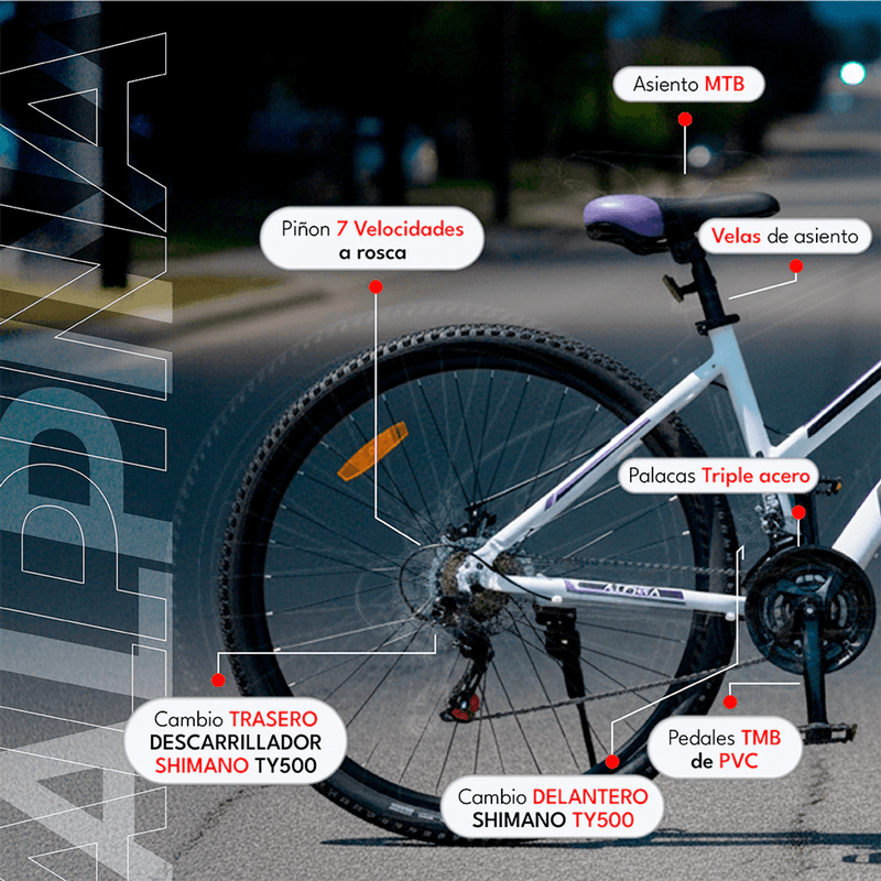 ALPINA 2.0 PRO EDICION LIMITADA ULTRA LADY MUJER, totalmente mejorada, cuadro mas liviano de aluminio, Shifters Shimano EF41, horquilla con regulación y bloqueo y cubiertas reforzadas.