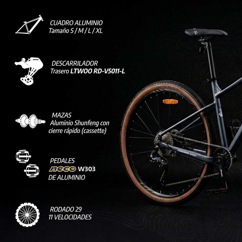La Overtech Peregrine Sport R29 mantiene la lógica moderna de la línea Peregrine: cuadro de aluminio 6061, transmisión 1x11 LTWOO, frenos hidráulicos y una propuesta más deportiva para quienes quieren una bicicleta más técnica, con menor mantenimiento y mejor respuesta general.