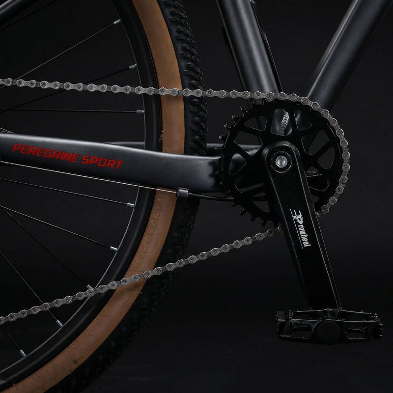 La Peregrine Sport tiene respaldo directo de fábrica Overtech: garantía oficial, postventa y repuestos. Monoplato LTWOO con cassette 11-42T, hidráulicos Sparkle, horquilla aluminio con bloqueo remoto y componentes Neco y Prowheel en toda la línea de contacto.