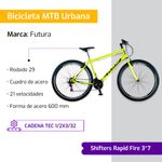 Bicicleta MTB Urbana Futura Techno 29er Híbrida Acero