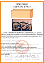 En ningún caso deberá ser armada o manipulada por personas sin el debido conocimiento. Esto puede provocar graves lesiones al ciclista y/o a terceros. El no cumplimiento de esta clausula anula indefectiblemente la garantía.