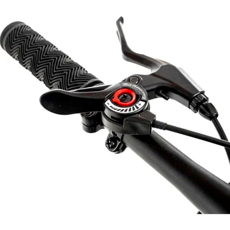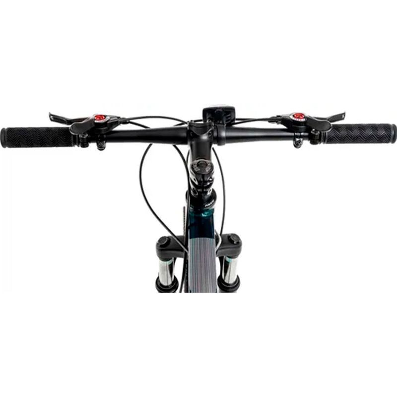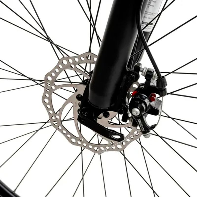 Sus frenos a disco mecánicos en ambas ruedas garantizan una frenada precisa y segura, incluso en condiciones exigentes. Además, incluye suspensión delantera, manubrio recto, pedales de aluminio y asiento de cuero sintético para un confort superior.