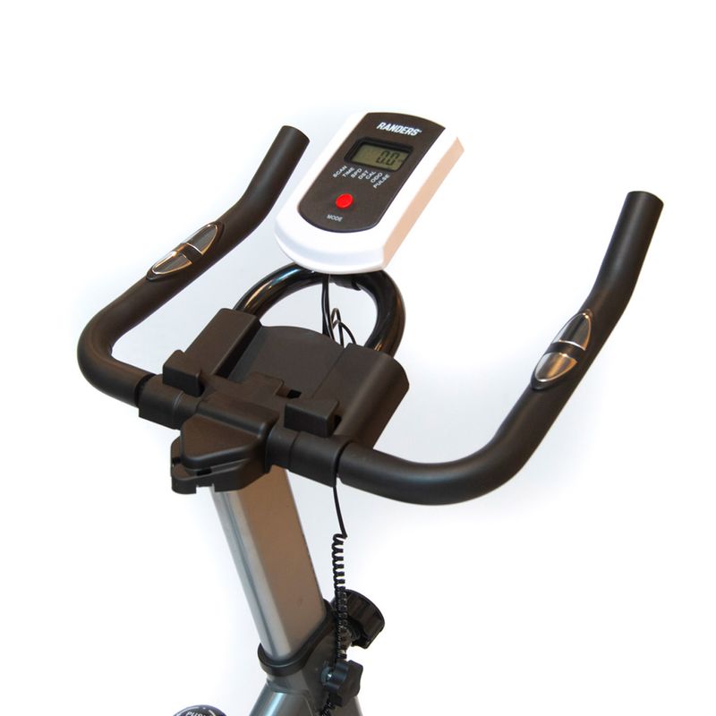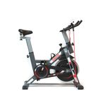 Esta bicicleta cuenta con ruedas para fácil traslado, freno de emergencia y bandas elásticas a los lados del manubrio.