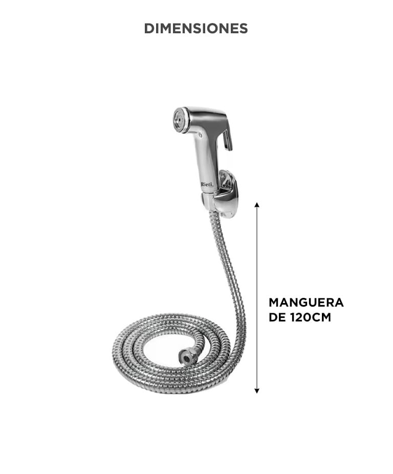 Fabricado con cuerpo cromado y manguera reforzada, ofrece mayor durabilidad frente a modelos plásticos, manteniendo su funcionamiento con el uso continuo.