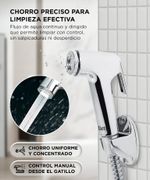 El bidet manguera extensible permite regular el flujo de agua desde el gatillo, logrando una limpieza efectiva y cómoda sin salpicaduras ni desperdicio.