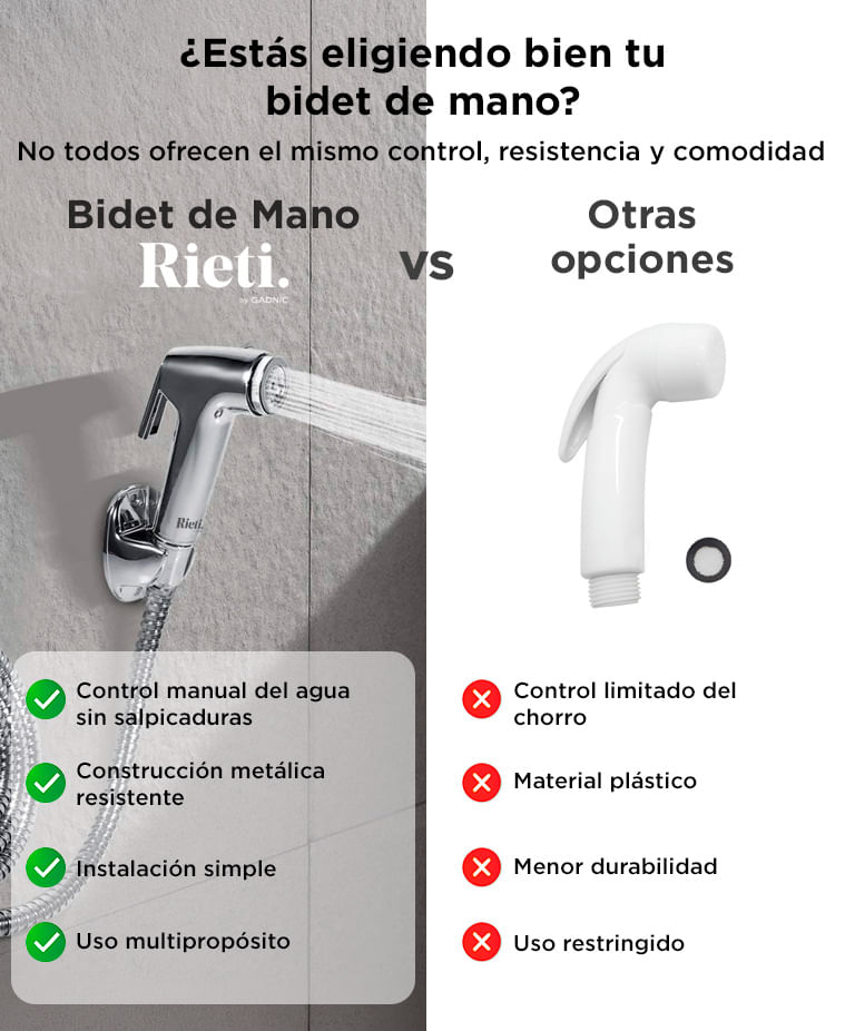 El bidet de mano se instala fácilmente sin necesidad de herramientas especiales ni asistencia profesional, ideal para baños hogareños o departamentos.