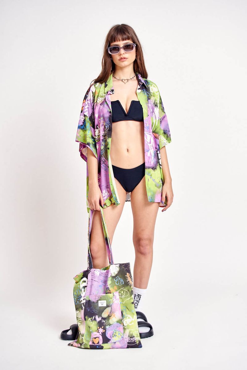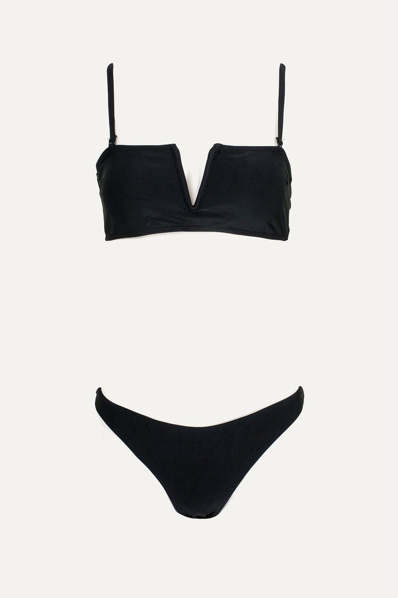 Bikini compuesta por top y vedetina. Top con detalle de V armado y breteles desmontables.
