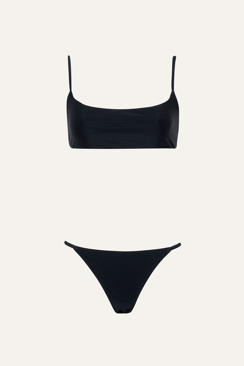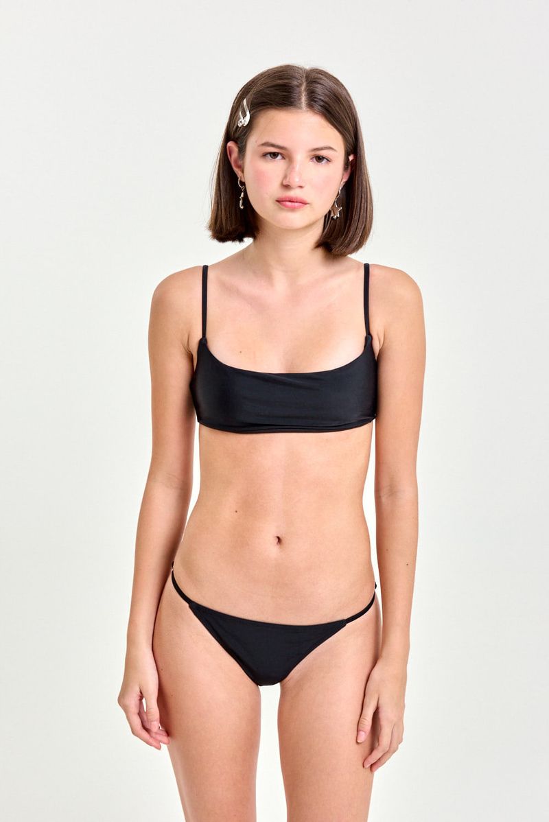 Bikini top con doble tela, breteles y tiras regulables. Chapita personalizada en bombacha. Su diseño clásico y cómodo lo vuelve un infaltable del verano.