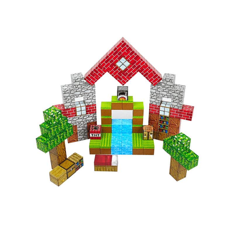100 piezas de bloques magnéticos para armar tu propio set al estilo Minecraft.