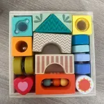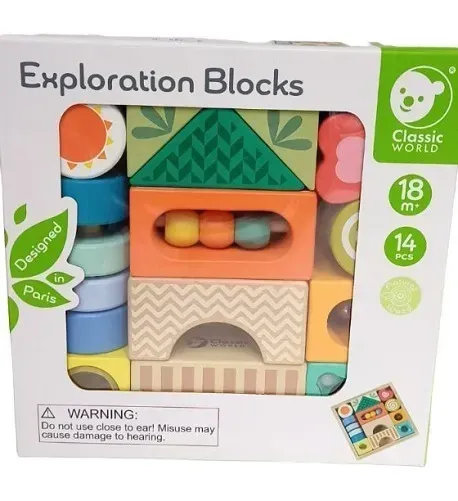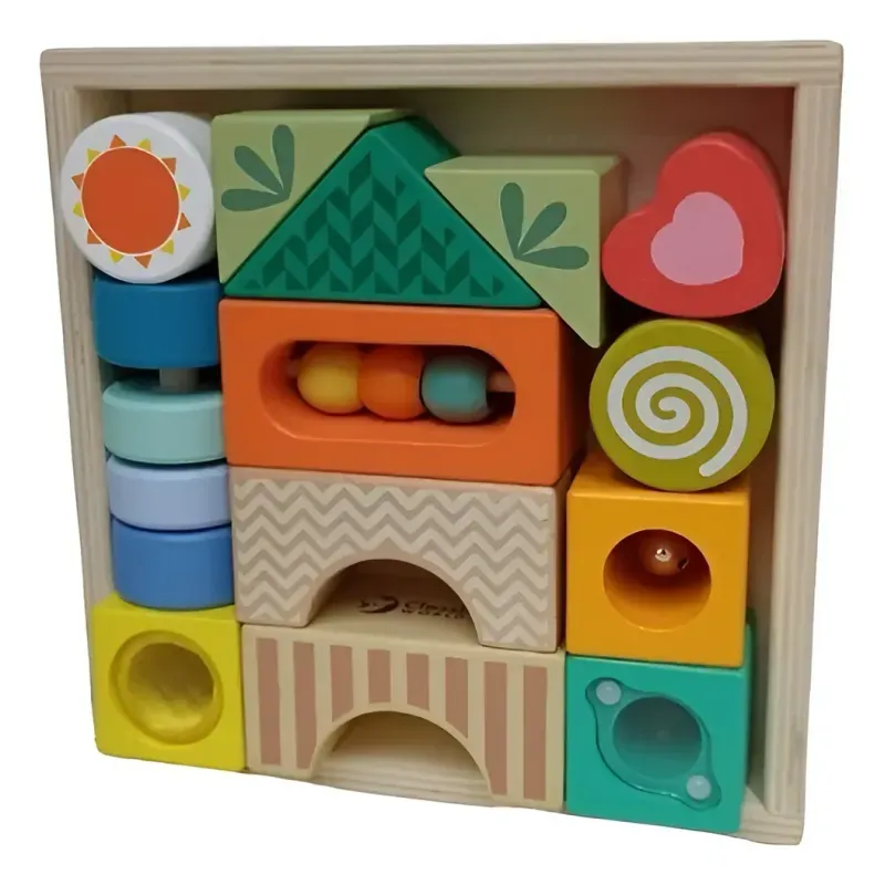 El paquete incluye 18 bloques, de los cuales 8 tienen diferentes funciones, para sacudir, empujar, tocar, observar.