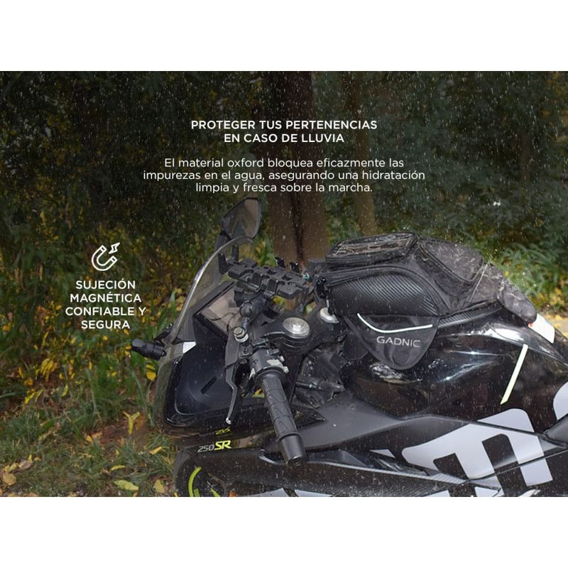 Fabricado con materiales de alta calidad, este bolso para tanque está diseñado para resistir los elementos y brindar un rendimiento duradero. Su construcción resistente garantiza que se mantenga firmemente en su lugar en el tanque gracias a su sistema de sujeción magnética confiable.