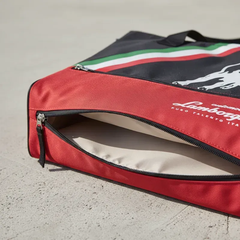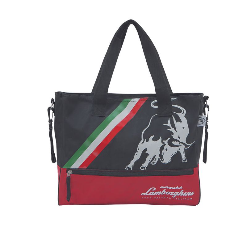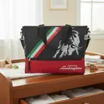 Bolso Maternal Con Cambiador Bolsillos Porta Mamadera Ganchos Para Coche Lamborghini Original Negro/Rojo
