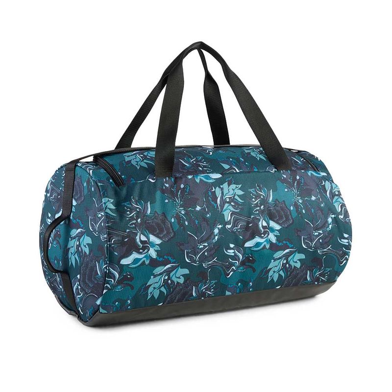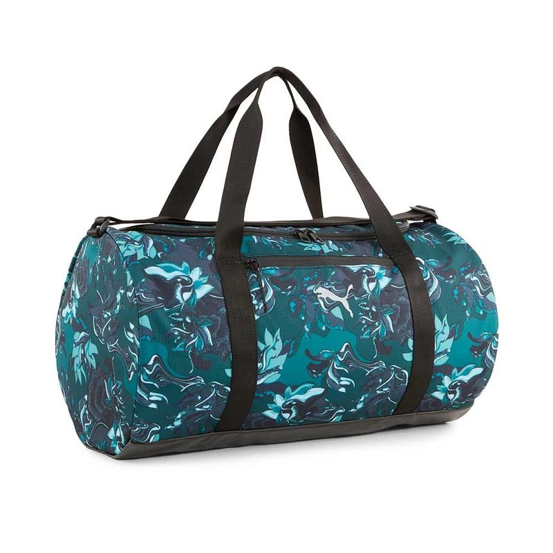 Su diseño tipo barril ofrece un amplio compartimento principal con cierre bidireccional, perfecto para guardar ropa, calzado y accesorios deportivos. Además, cuenta con bolsillo frontal con cierre y bolsillo interno para mantener tus pertenencias organizadas y seguras. Fabricado con al menos un 50% de materiales reciclados, este bolso apuesta por la sostenibilidad sin perder durabilidad. Sus correas de hombro ajustables en jacquard brindan comodidad al llevarlo, mientras que el logo PUMA Cat aporta el sello distintivo de la marca. Con un volumen de 28,5 litros y medidas de 27 x 50 x 27 cm, es el complemento perfecto para quienes buscan un bolso deportivo versátil, resistente y con estilo.