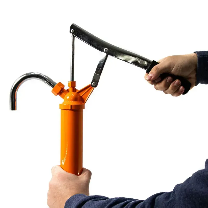 Bomba manual práctica y resistente, ideal para la transferencia de aceites, lubricantes y combustibles no corrosivos. Diseñada para uso en tambores, ofrece un manejo sencillo y un buen caudal de trabajo.