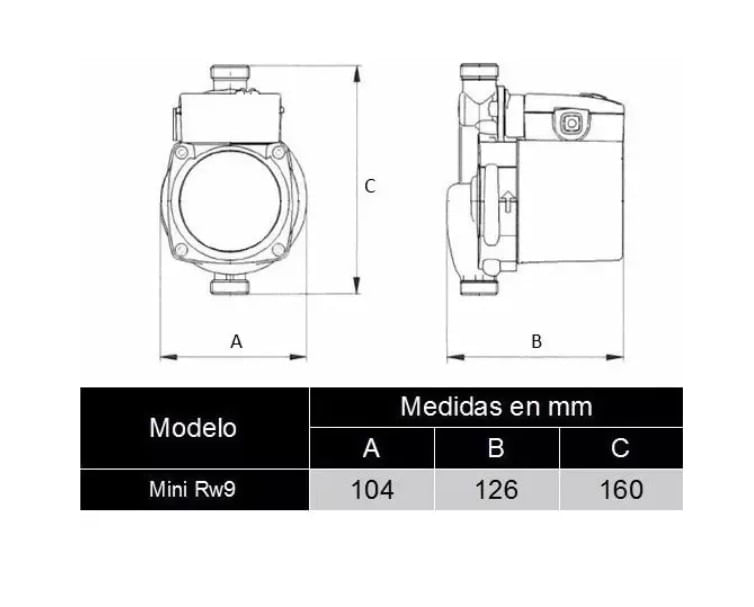 Máxima presión: 9mca - 0,9 bar - 0,09MPa