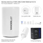 Bomba Electrica para Bolsas al Vacío Wanderlust, con puerto USB sin adaptador 20W 1500mah 5V 1A- 10
