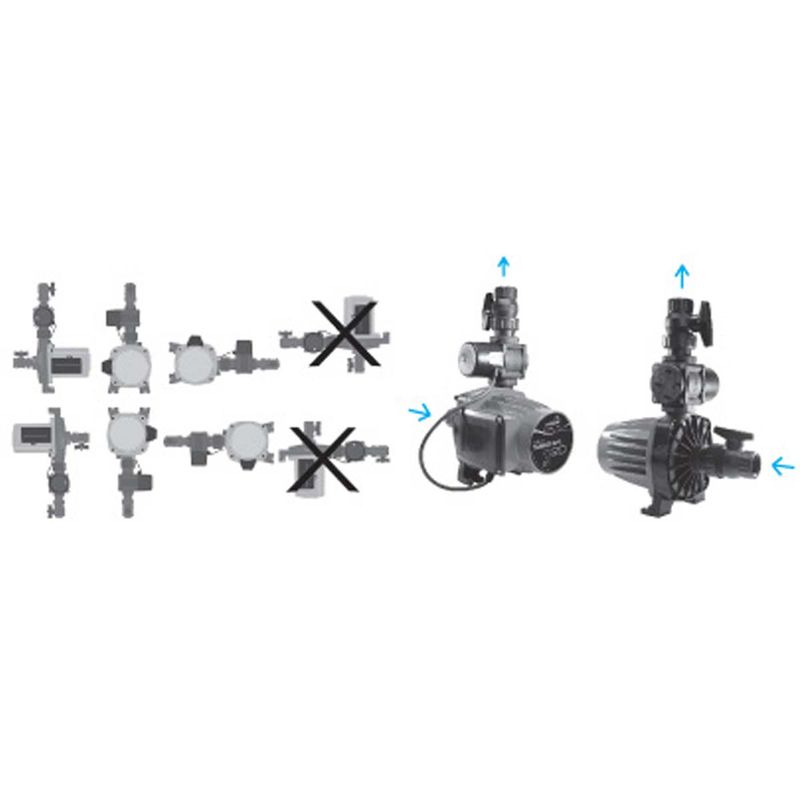 El presurizador deberá ser instalado obligatoriamente de modo que el eje de la electrobomba permanezca en posición horizontal, de acuerdo a las siguientes figuras. El no cumplimiento de esta norma implicará el desgaste irregular del equipo y la consecuente pérdida de la garantía.