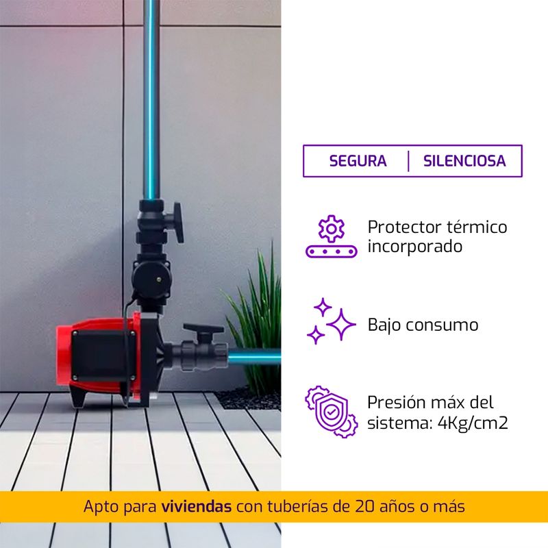 Aumento de presión de agua en residencias en general, nuevas o antiguas con tanque elevado.