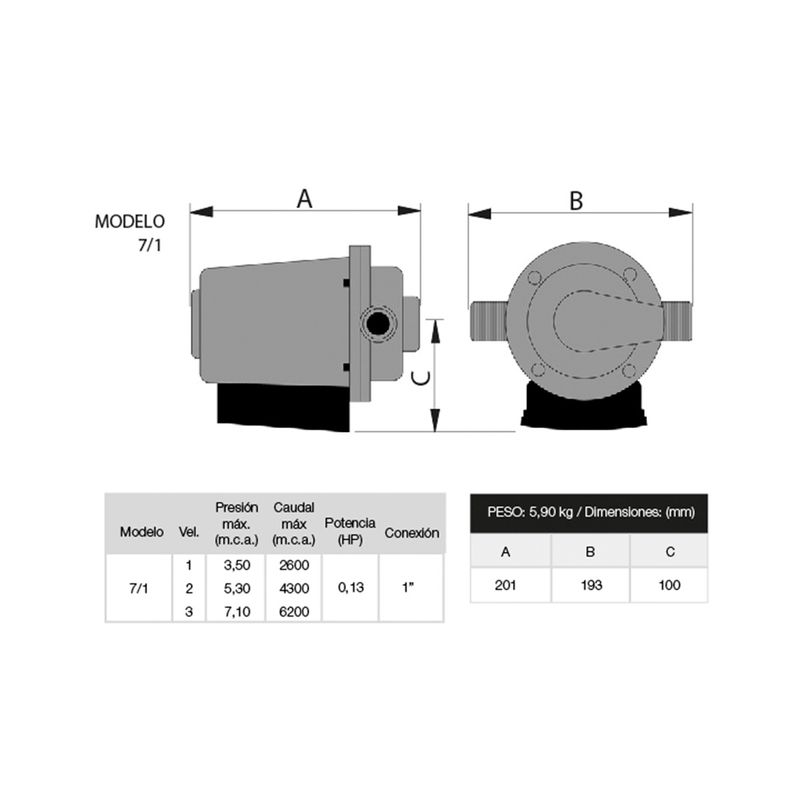 -Caudal máximo: 6200 l/h (velocidad 3)