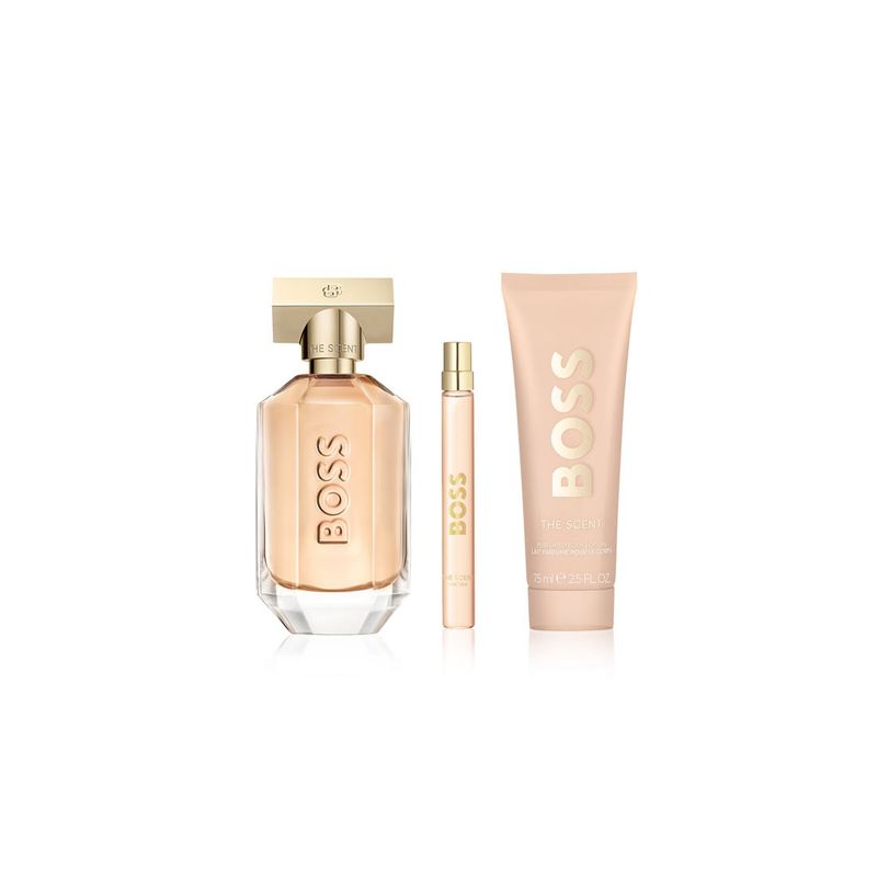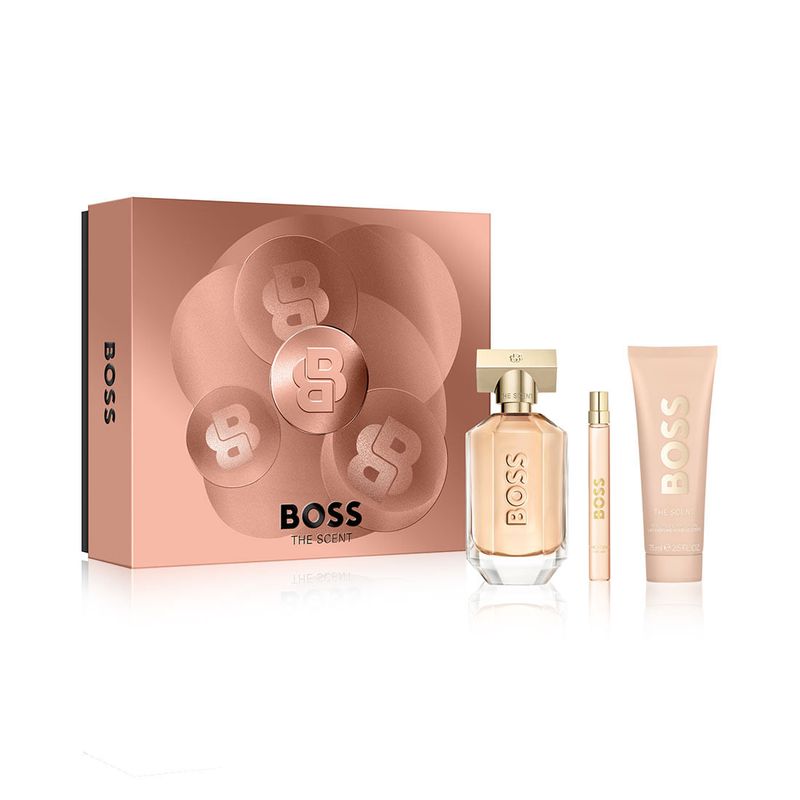 Capturá la magia y adueñate del momento esta temporada festiva con el set de Boss The Scent for Her Eau de Parfum. Inspirado en la emoción de las celebraciones navideñas, los sets se presentan en una elegante caja color rosa dorado decorada con los icónicos monogramas Double B.