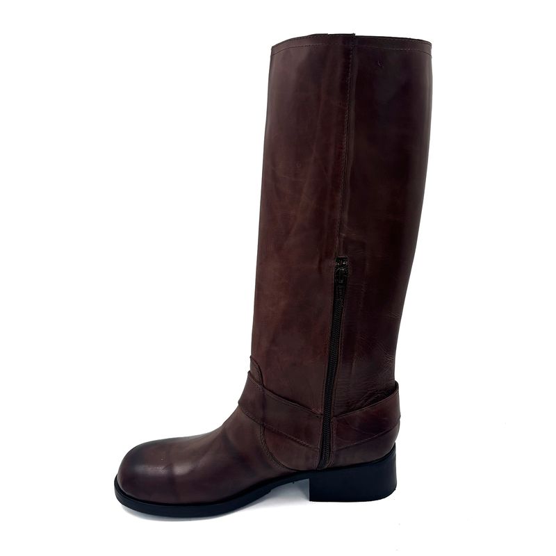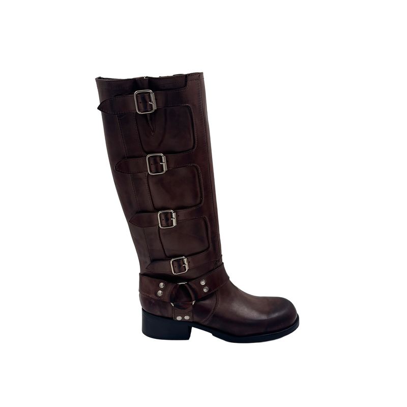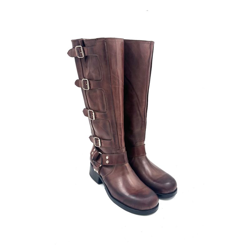 Botas De Mujer De Cuero Vacuno Y Gamuza Con Hebillas, Caña Alta, con cierre, super comodas