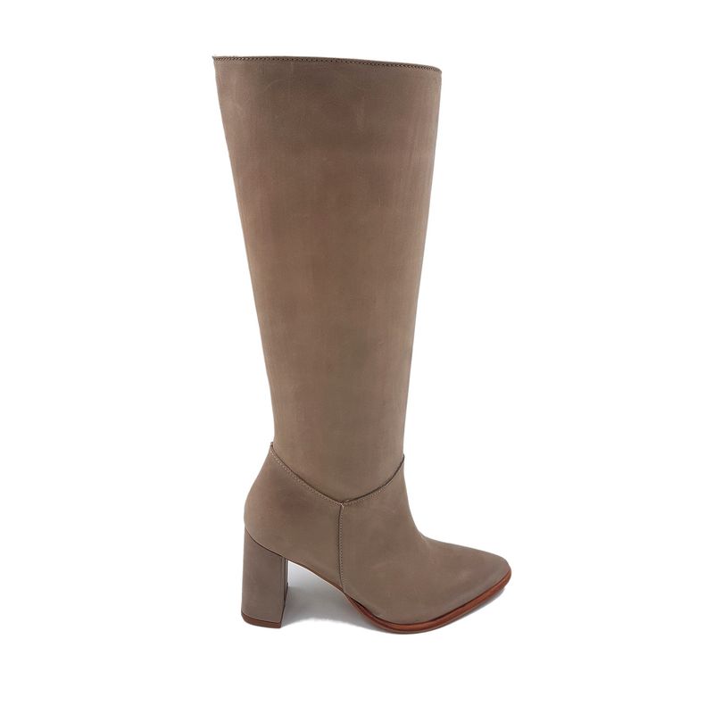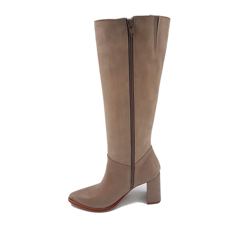 Bota de mujer, confeccionada 100% en Cuero Vacuno, con caña alta, tipo bucanera, taco ancho, super comoda y liviana