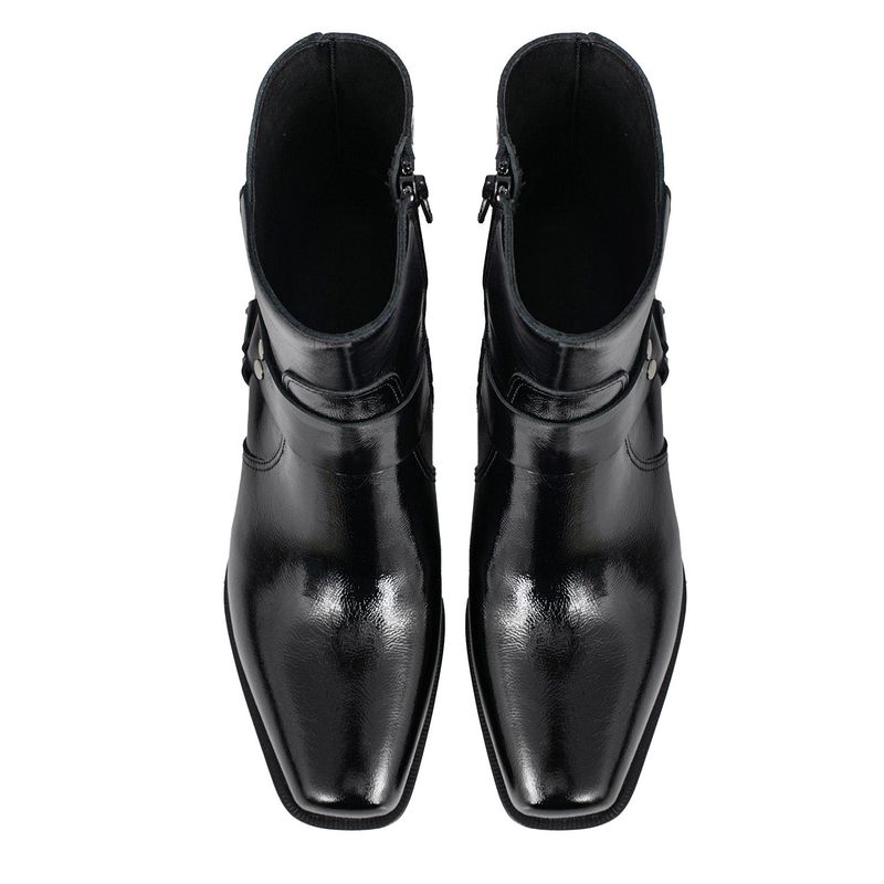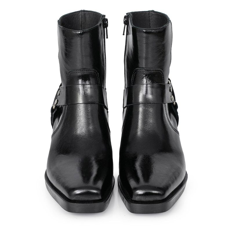 La Bota Sierra brilla con actitud propia: charol que atrapa todas las miradas, estilo texana con puntera cuadrada para un look afilado y cero predecible. Su base antideslizante y cierre lateral suman comodidad sin complicaciones, porque estar al ritmo del día no debería quitarte estilo. Ideal para quienes se animan a destacar y no temen pisar fuerte.