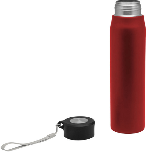 Capacidad 800ml. Acero inoxidable. Botella de acero inoxidable 304. Tapa combinada en plástico y acero inoxidable 201 con tira de color gris de 12 cm de largo. Ideal para llevarla a todos lados. Presentación en caja de regalo.