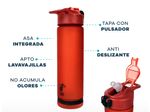 -Mantiene tu bebida segura gracias al sistema antiderrame y pulsador con traba.