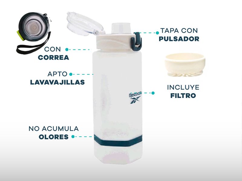 BOTELLA PARA AGUA DEPORTIVA 750 ML REEBOK RESISTENTE CON CORREA