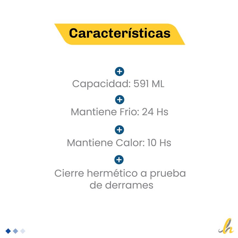 - Mantiene las bebidas calientes por 10 horas o frías por 24 horas