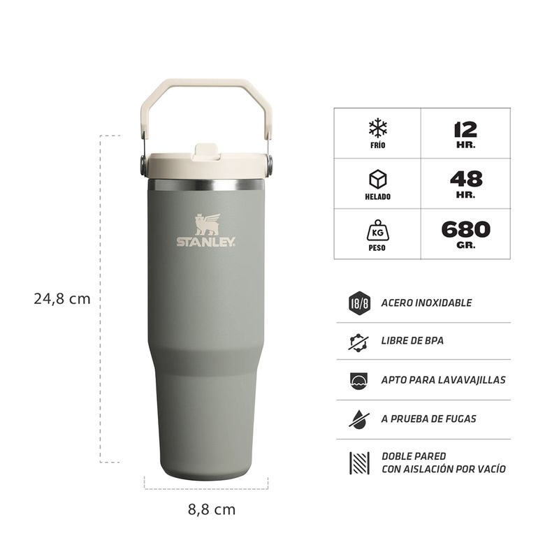 Estos vasos llamativos y coloridos están diseñados para mantenerte hidratado con un estilo totalmente funcional. Ideales para viajes en auto o entrenamientos en casa, cuentan con un sorbete abatible incorporado para beber de forma fácil y sin esfuerzo. Cerralo con un clic, y el aislamiento al vacío de doble pared mantendrá tu bebida bien fría durante horas. Para ayudarte a llevar un estilo de vida sostenible, el vaso IceFlow está fabricado en parte con plásticos reciclados provenientes de redes de pesca desechadas, evitando que estos residuos terminen en nuestros océanos. Stanley evita que casi 45 kilos de desechos plásticos ingresen a las aguas por cada 1.000 vasos IceFlow fabricados.