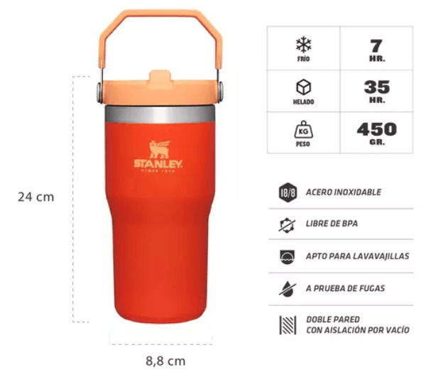 El aislamiento al vacío de doble pared de Stanley también mantiene las bebidas heladas por más tiempo.