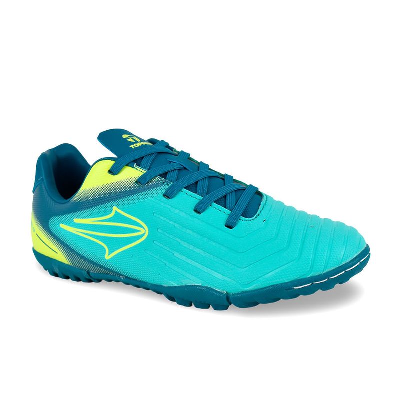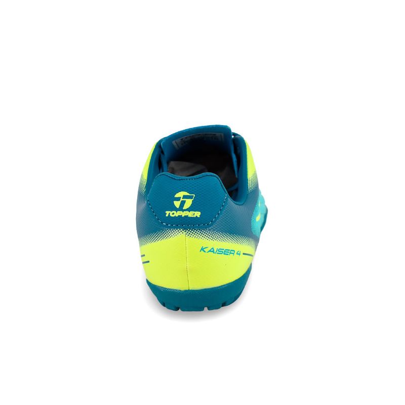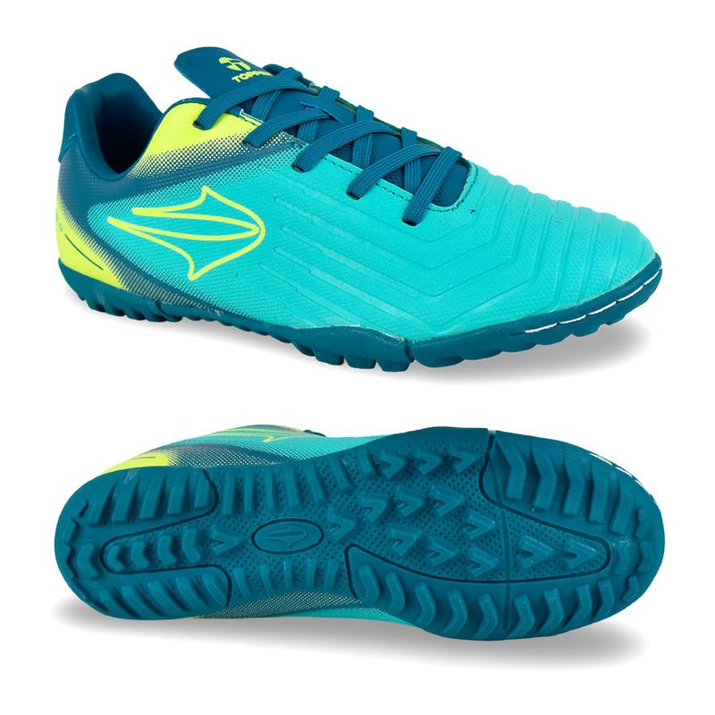 Llevá tu juego al siguiente nivel con los nuevos Topper Kaiser 4 TF. Diseñados para jugadores que combinan velocidad y un control excepcional, estos botines son la herramienta definitiva para imponer condiciones en canchas de césped sintético. Su diseño moderno en colores vibrantes no solo te hará destacar, sino que su construcción técnica garantiza durabilidad y un toque superior en cada jugada.La capellada de cuero sintético de alta calidad incorpora relieves estratégicos que optimizan el contacto con el balón, permitiendo pases más precisos y mayor efecto en los remates.Su suela de goma tipo Turf (TF) cuenta con tapones redondos distribuidos para ofrecer un agarre firme y estabilidad superior en superficies sintéticas o multisuperficies.La estructura reforzada con costuras estratégicas asegura una larga vida útil, mientras que su interior acolchado brinda la comodidad necesaria para los 90 minutos de juego. Silueta liviana y aerodinámica en combinación de colores verde Ktoo, azul y lima ácido para una estética profesional.