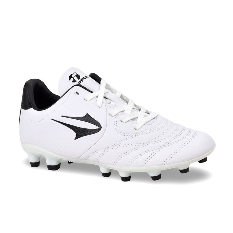 Un calzado histórico de Topper que se renueva sin perder su esencia, los San Ciro V FG combinan un diseño atemporal de fútbol de campo con características modernas para un rendimiento óptimo. Con costuras reforzadas, una construcción más liviana y una suela diseñada para césped natural, son ideales para un excelente desempeño en cada partido. Fabricada en cuero sintético de excelente calidad, que permite una buena sensación de toque con la pelota, durabilidad y confort. Un diseño optimizado para ser más liviano, permitiendo mayor agilidad y velocidad en el campo de juego. La suela de TPU con tapones fijos está diseñada específicamente para proporcionar tracción y agarre superiores en canchas de césped natural (Firm Ground).