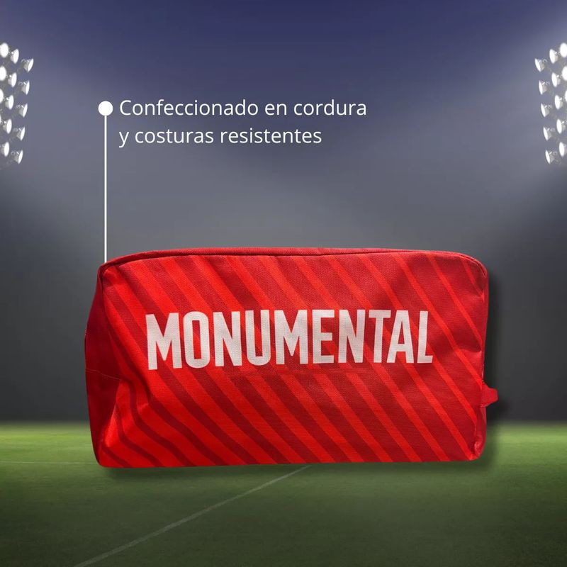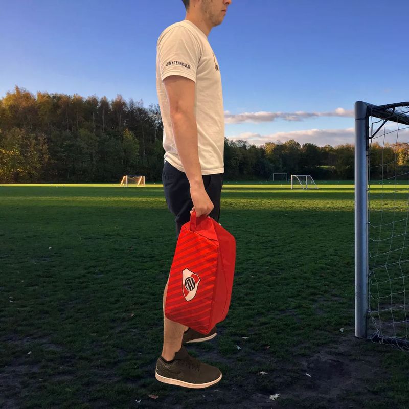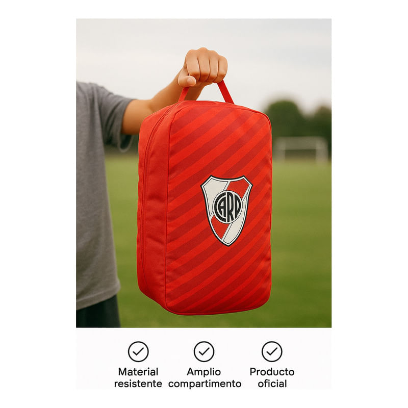 Llevá la pasión de los Millonarios a todas partes con el botinero de River Plate. Confeccionado en cordura y costuras resistentes, este botinero es ideal para los verdaderos aficionados al fútbol. Su diseño liso y moderno se adapta a cualquier estilo, mientras que su material de poliéster garantiza durabilidad y resistencia. Incorpora una manija de mano para llevarlo cómodamente a un partido o a entrenar. Es muy espacioso y puede guardar canilleras, guantes, medias, vendas, ropa y todo otro accesorio necesario para la práctica del fútbol. Además, cuenta con un cierre seguro que protege tus pertenencias. Con dimensiones de 35 cm x 19 cm, es el complemento perfecto para los deportistas que buscan funcionalidad y estilo. ¡No te quedes sin el tuyo!