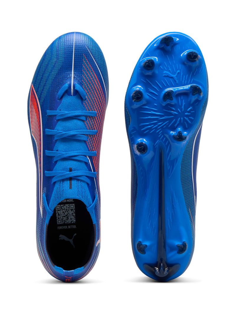 Pisa el acelerador con los ULTRA 6. Ideales para velocistas en ascenso, esta versión de ULTRA incorpora un empeine de malla técnica renovado, la suela SPEEDSYSTEM de PUMA y el diseño de tacos FastTrax para una tracción multidireccional. Sus tres tacos redondeados en el lateral permiten una transición perfecta entre superficies firmes y césped artificial. Sin extras. Todo ULTRA.