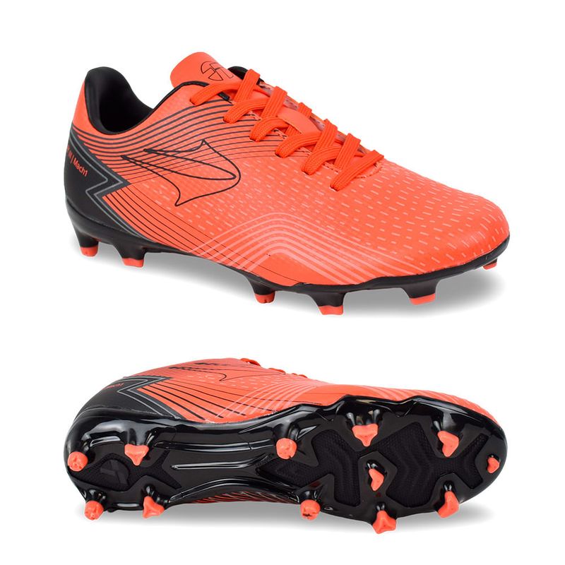 Los botines Topper Stingray III Mach 1 FG son la herramienta definitiva para los jugadores que buscan dominar el terreno de juego con velocidad, control y precisión. Diseñados para rendir al máximo en canchas de césped natural, este modelo combina un diseño audaz y moderno con la tecnología necesaria para elevar tu juego. Su vibrante color naranja y negro, junto con la suela que proporciona un agarre excepcional, te permitirá destacar en cada jugada.