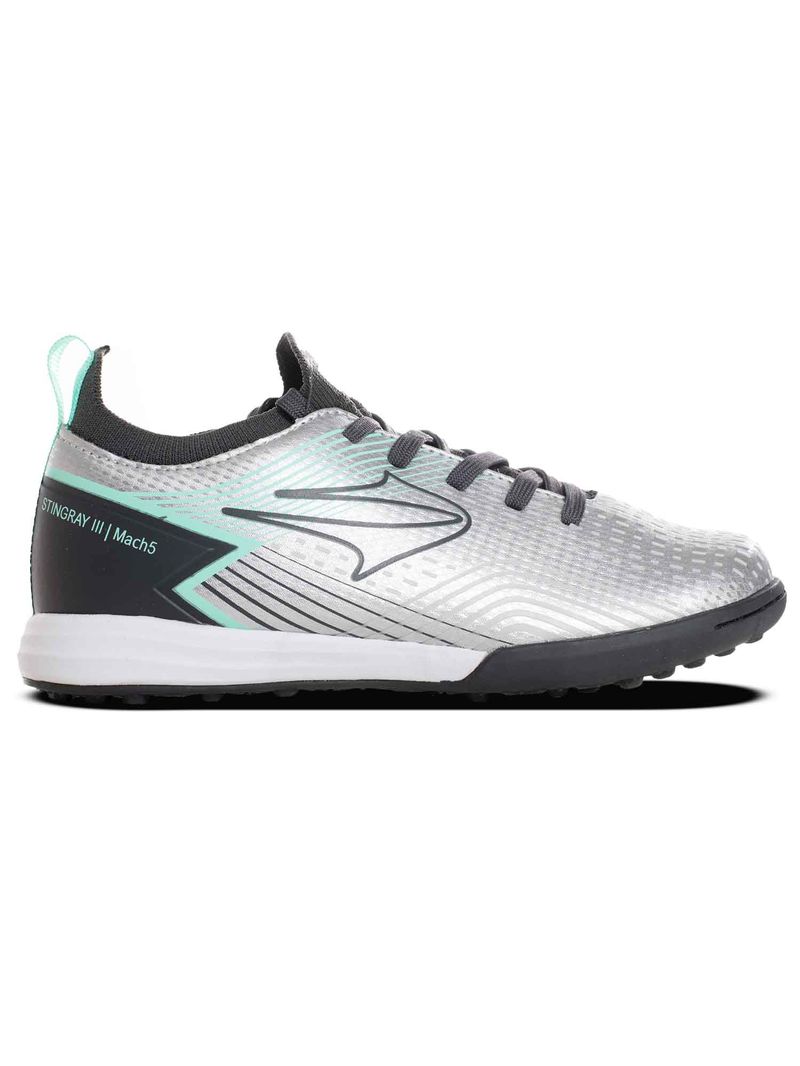 Botines Topper Stingray III Mach 5 TF Kids Niños Fútbol Plateado