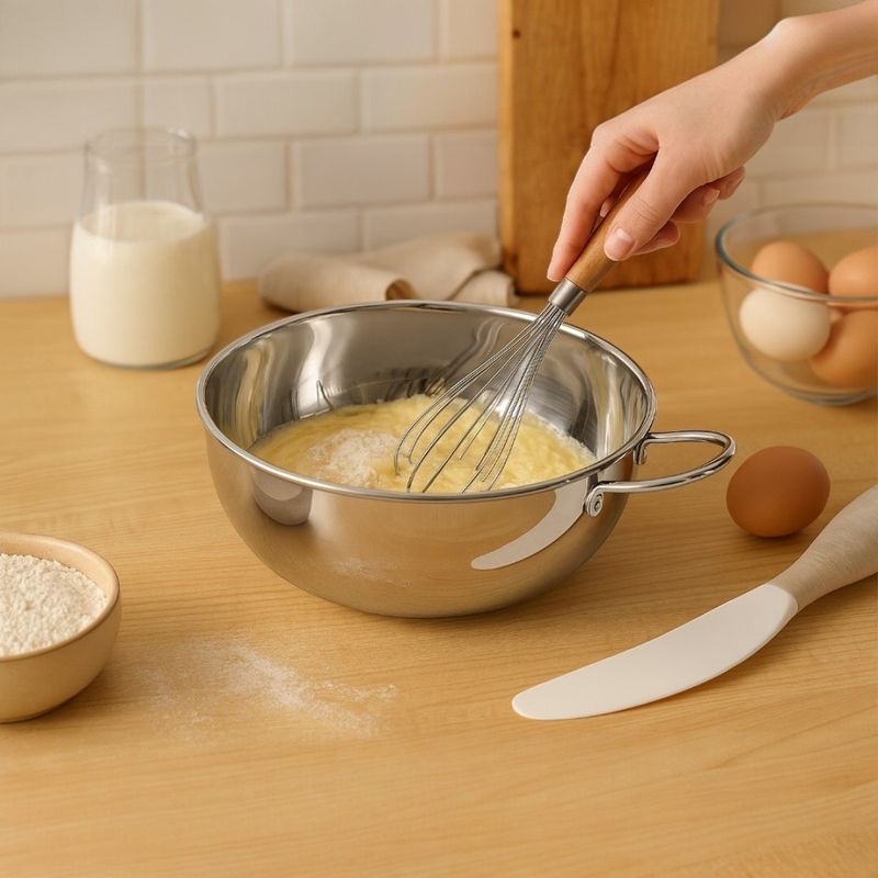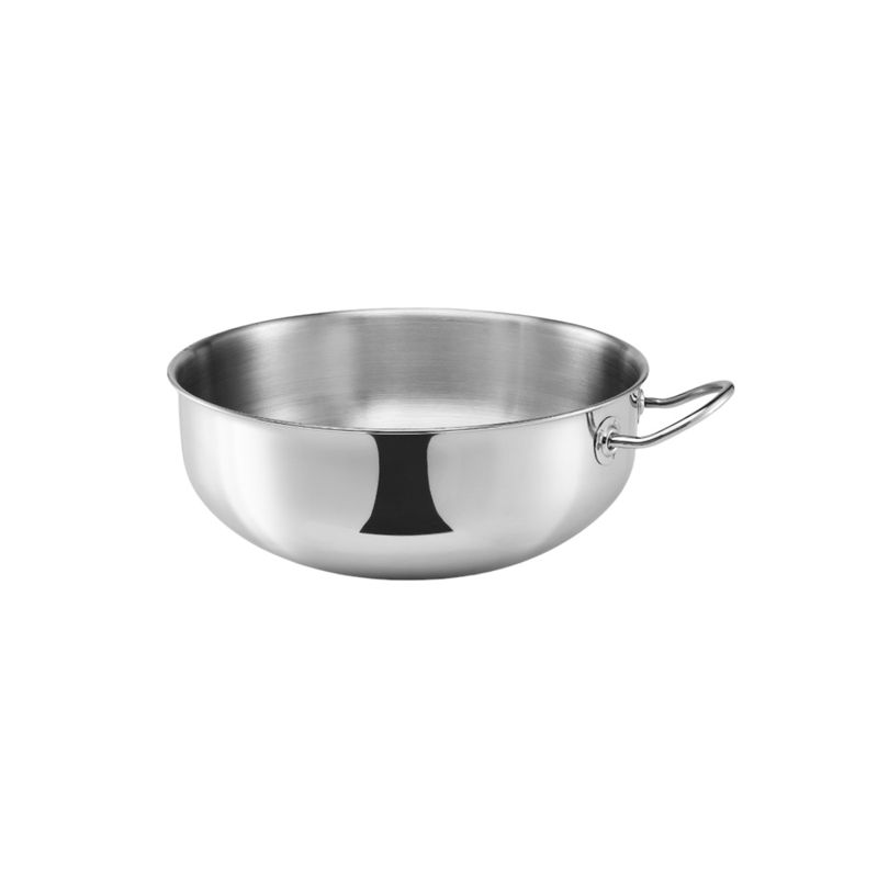El Bol Batidor de Acero Inoxidable es la herramienta perfecta para batir, mezclar y preparar masas, cremas o salsas con facilidad y precisión. Su manija soldada ofrece un agarre firme y seguro, ideal para reposteros y cocineros que buscan comodidad y eficiencia en cada uso. Fabricado con acero inoxidable de primera calidad, es resistente, higiénico y apto para uso 100% profesional.