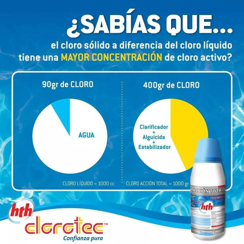 - Añadir 20 gr. de Cloro Shock hth Clorotec por cada 10.000 litros de agua