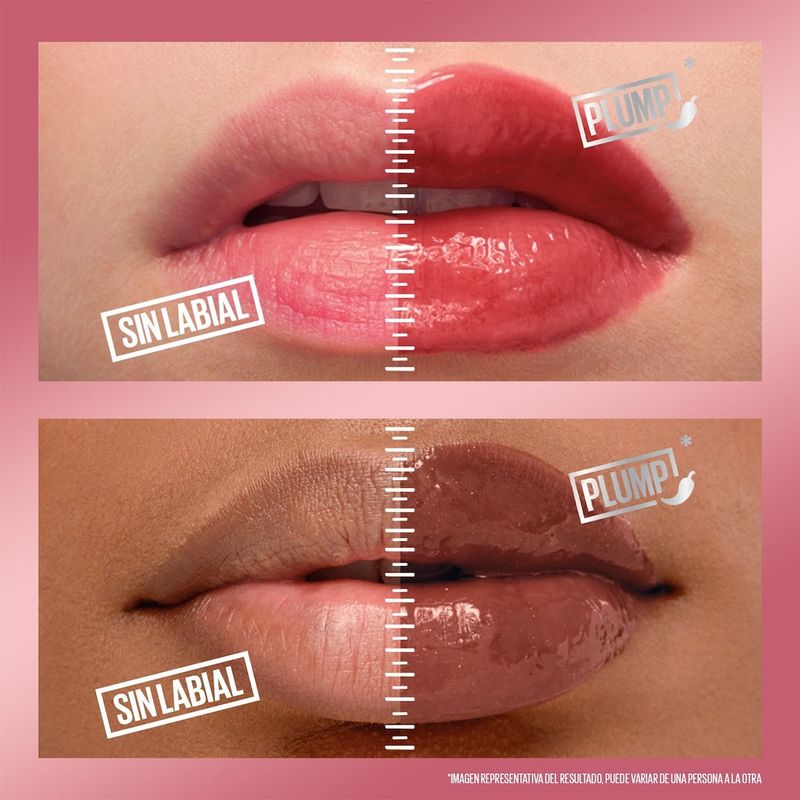 Labial tipo gloss con efecto voluminizador instantáneo, para lucir labios más gruesos y sensuales por más tiempo.
