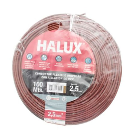 El Cable Unipolar 2.5 mm2 Marrón 100 m de Halux es la solución ideal para tus instalaciones fijas. Con su certificación Bureau Veritas y su material PVC/CU, te ofrece seguridad y durabilidad. Su color marrón se adapta a cualquier ambiente y su largo de 100 metros te permite realizar proyectos de gran envergadura. ¡No pierdas la oportunidad de adquirir este cable de alta calidad y llevar a cabo tus proyectos con éxito! Este cable unipolar de 2.5 mm2 de sección nominal, con un voltaje de 450/750 V, es perfecto para instalaciones fijas. Su material PVC/CU garantiza una excelente resistencia y flexibilidad, mientras que su color marrón lo hace discreto y elegante. Además, cuenta con una garantía de 6 meses, lo que te brinda tranquilidad al momento de realizar tu compra.