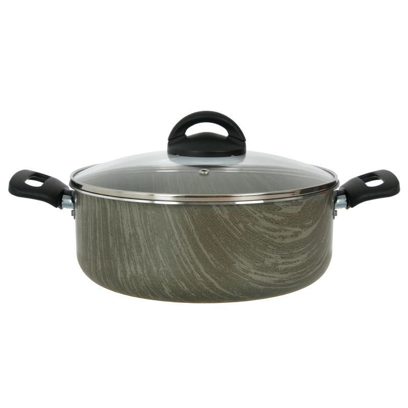Cacerola 24cm con tapa de vidrio templado con orificio para salida de vapor, 1,8 mm de espesor. Altura de olla : 9,5 cms / Capacidad : 4,5 lts.