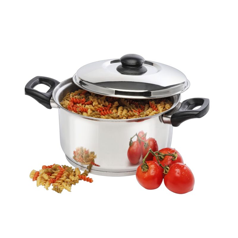 La Cacerola Merlot 20 cm es ideal para preparar guisos, pastas, salsas y todo tipo de comidas con el mejor rendimiento. Fabricada con acero inoxidable 18/10 de 0,7 mm de grosor, garantiza resistencia, higiene y durabilidad sin liberar sustancias tóxicas en los alimentos.