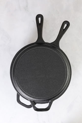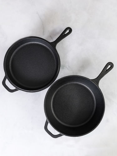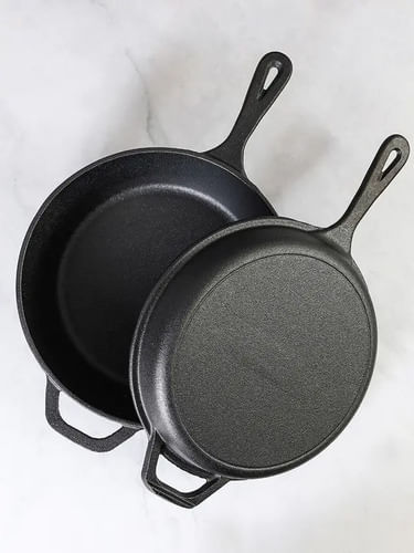 Cacerola y sárten de hierro fundido, sumado a su estructura y materiales, conserva el calor para cocinar y dorar de manera uniforme.