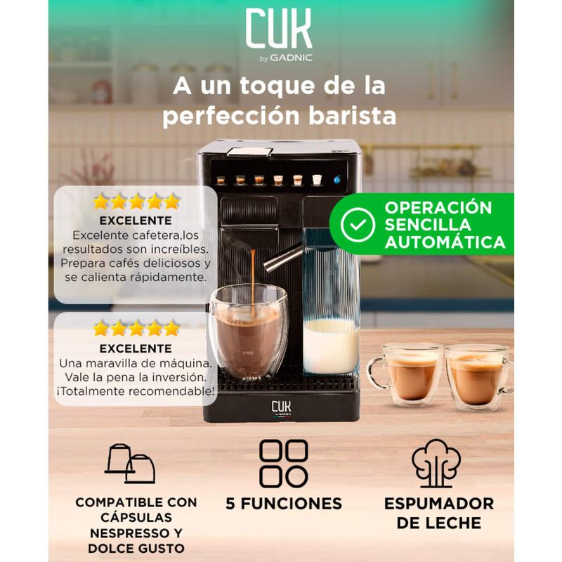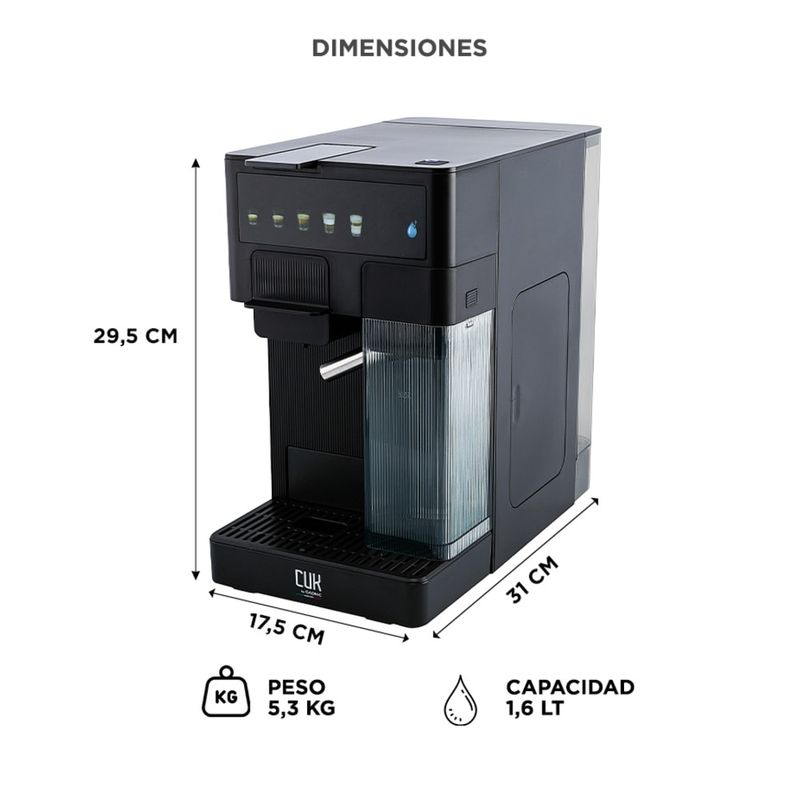 Compatible: café molido, cápsulas Nespresso y Dolce Gusto