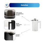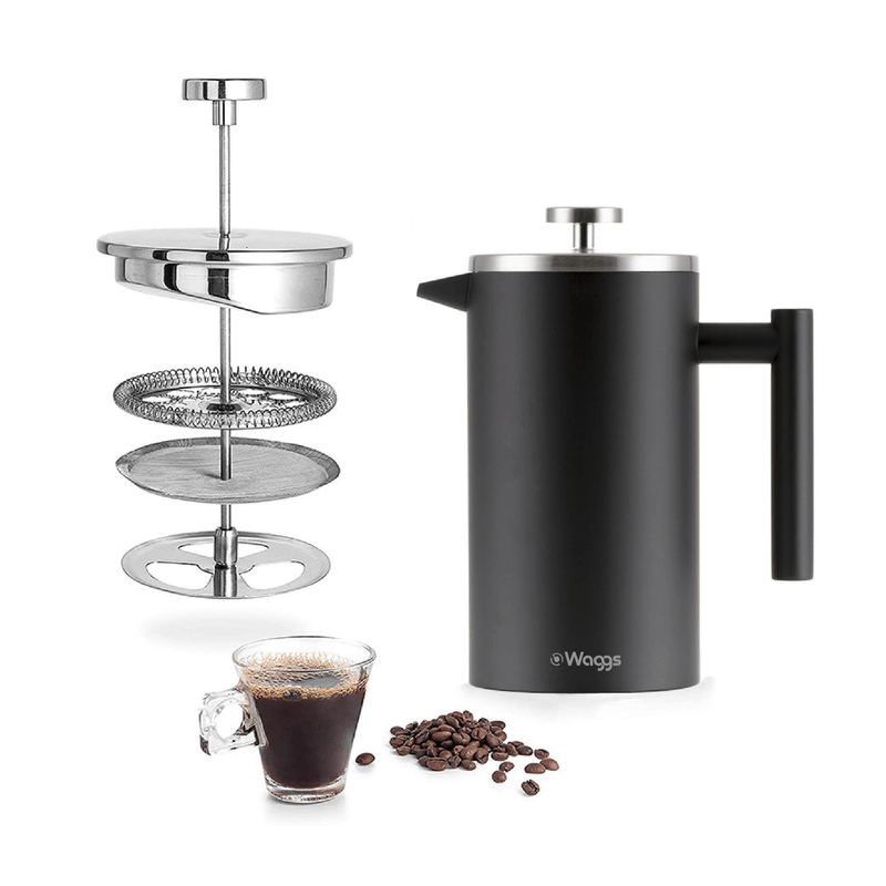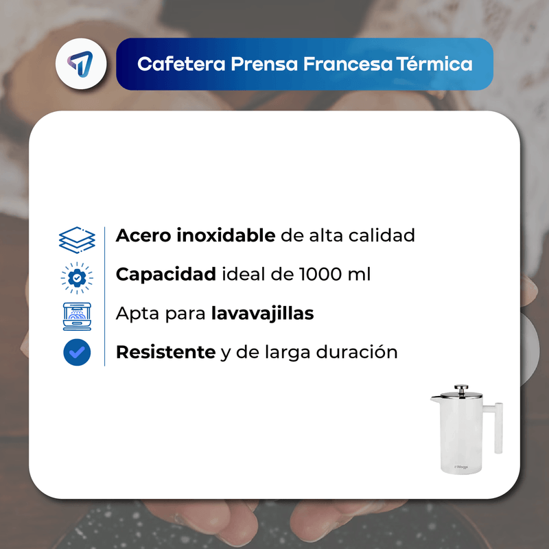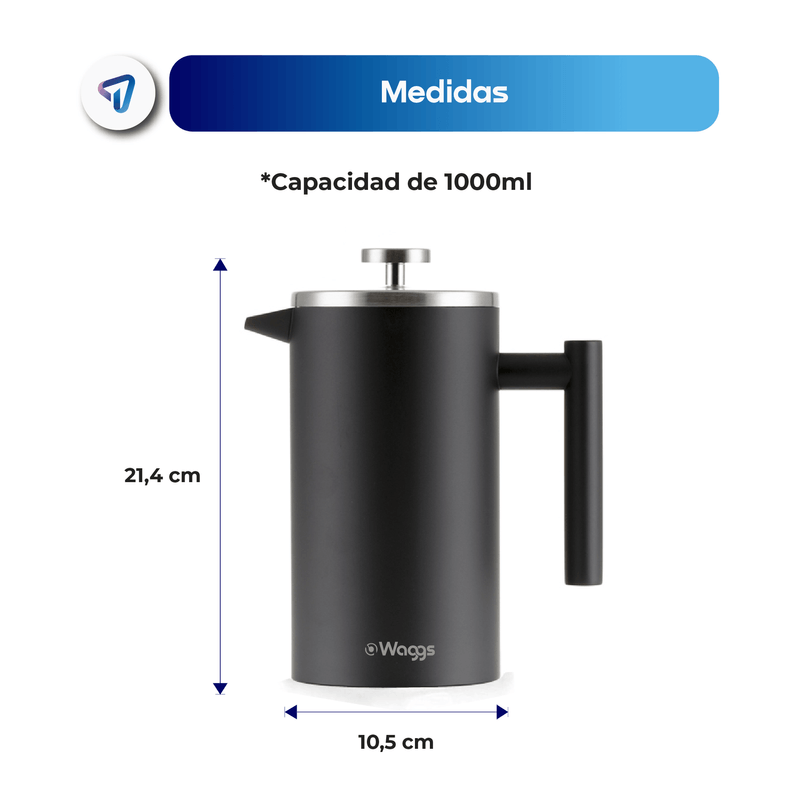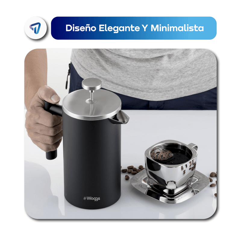La cafetera WAGGS Francesa Térmica de 1000 ml combina diseño y funcionalidad con su construcción en acero inoxidable de doble pared, manteniendo la bebida caliente por más tiempo. Su filtro de acero inoxidable asegura un café puro y sin residuos, mientras que su estructura resistente y apta para lavavajillas facilita el mantenimiento. Con 21.4 cm de altura y un peso de 750 g, ofrece una experiencia de preparación gourmet. Incluye filtro de acero inoxidable, garantizando durabilidad y un sabor auténtico en cada taza.