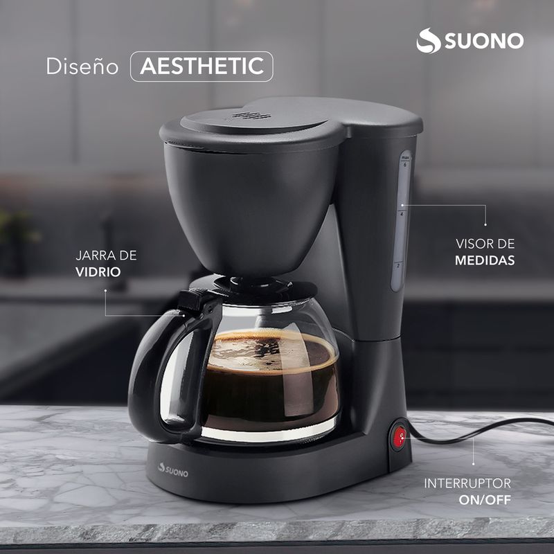 Diseño compacto y elegante que se adapta a cualquier cocina. Ideal para los amantes del café que buscan una cafetera práctica, económica y eficiente.